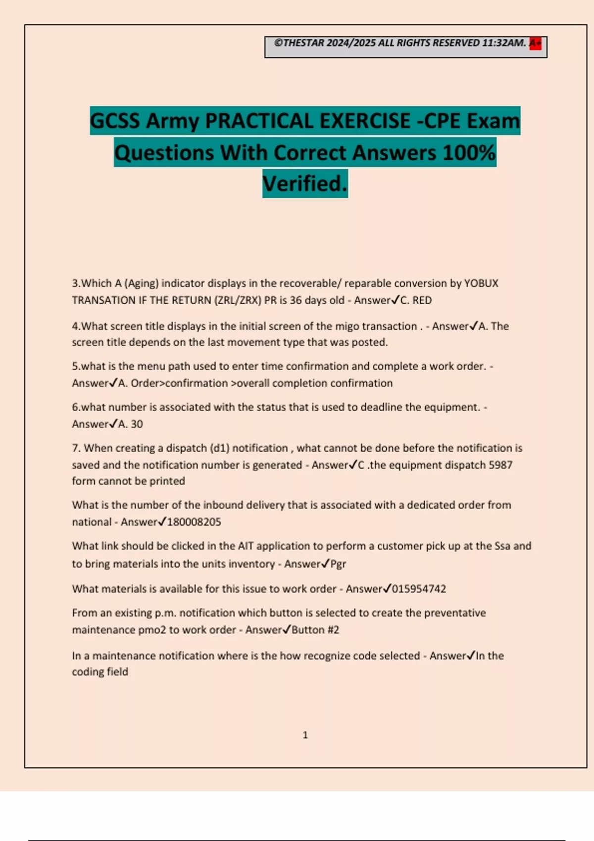 GCSS ARMY PRACTICAL EXERCISE -CPE WITH COMPLETE QUESTIONS AND ANSWERS ...