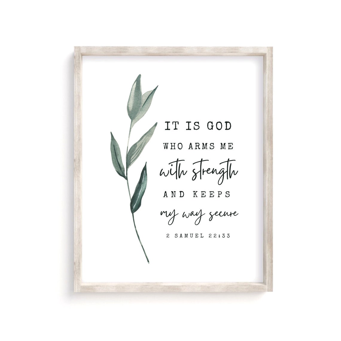 It is God Who Arms Me With Strength, 2 Samuel 22:33, Scripture Wall Art ...