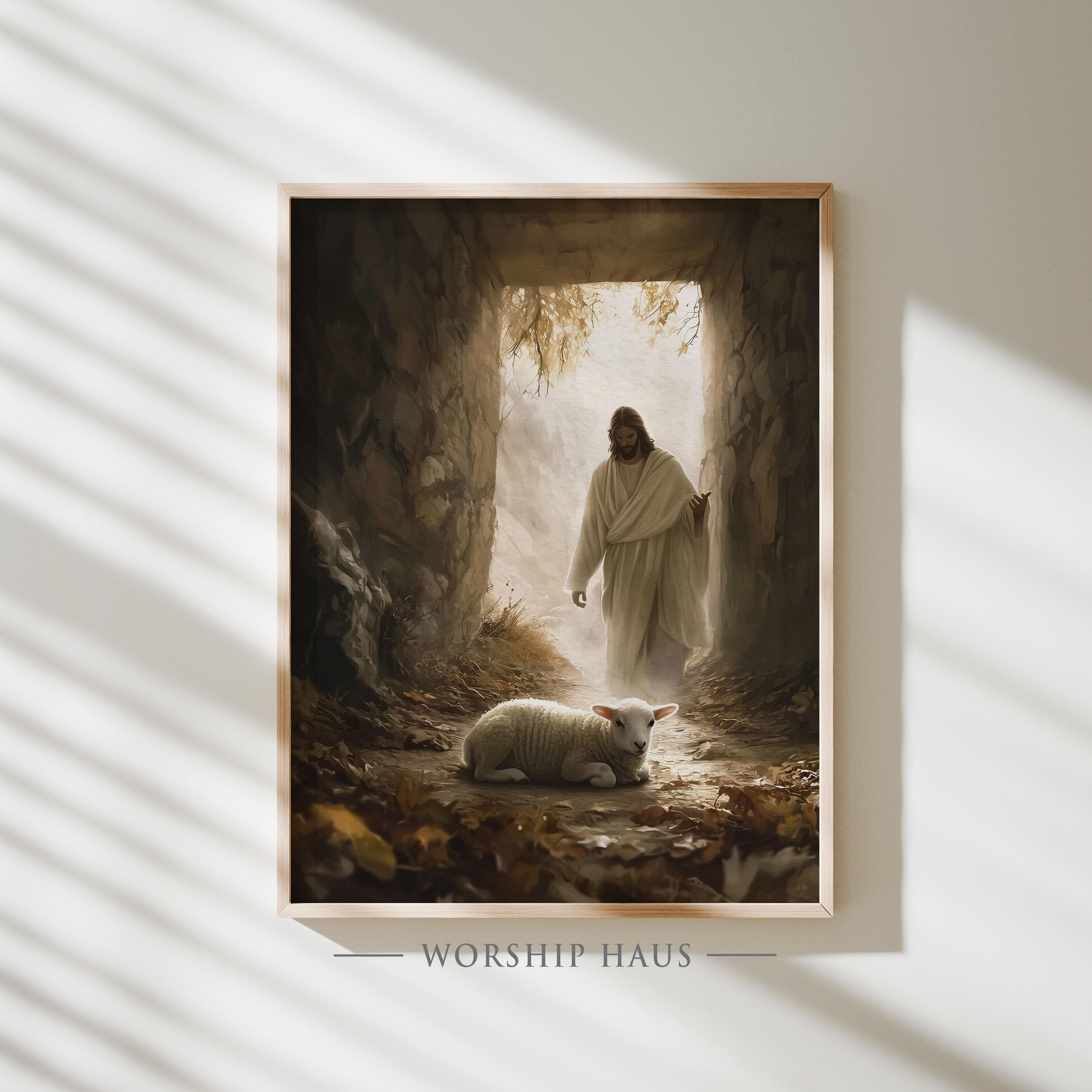 He Will Gather The Lambs In His Arms Christian Jesus With Sheep Scene ...