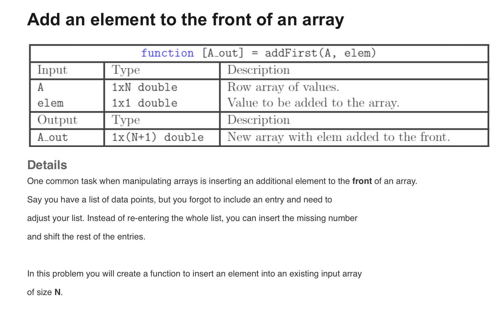 Solved Add an element to the front of an array Details One | Chegg.com