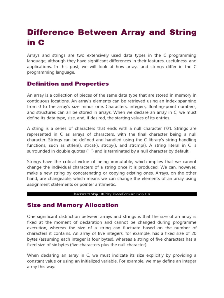 Difference Between Array and String in C | PDF | Parameter (Computer ...