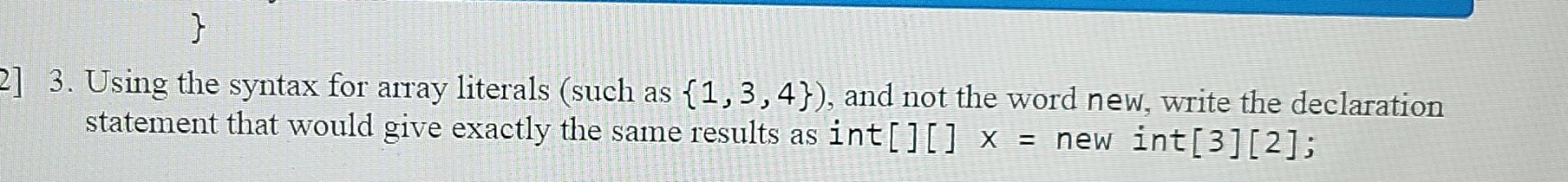 Solved } 2] 3. Using the syntax for array literals (such as | Chegg.com