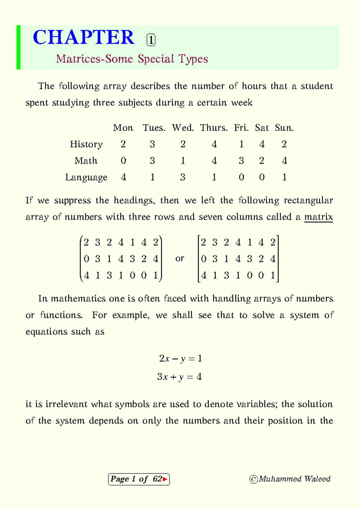 Matricess - CHAPTER 1 Matrices-Some Special Types The following array ...