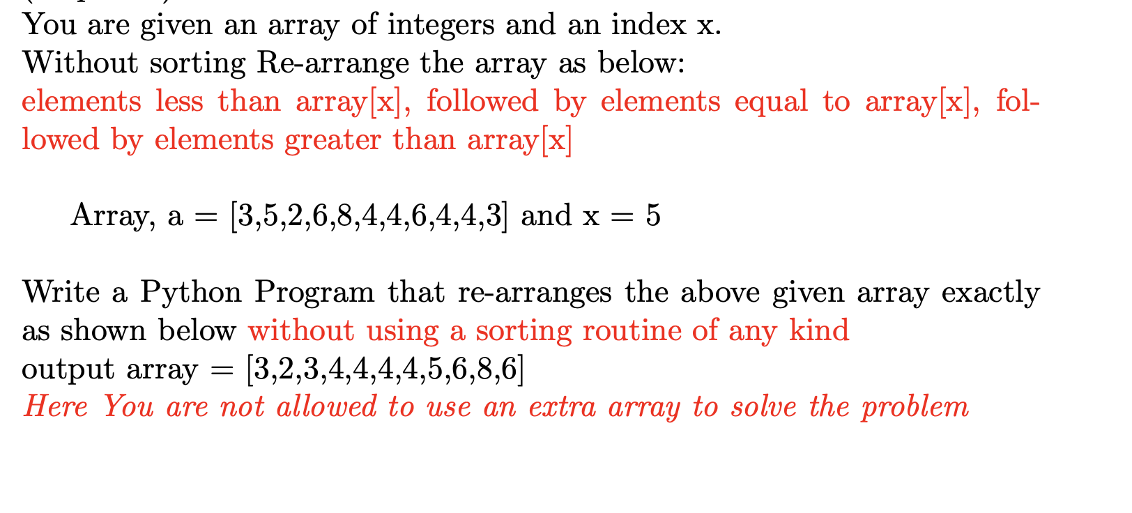 Solved You are given an array of integers and an index x. | Chegg.com