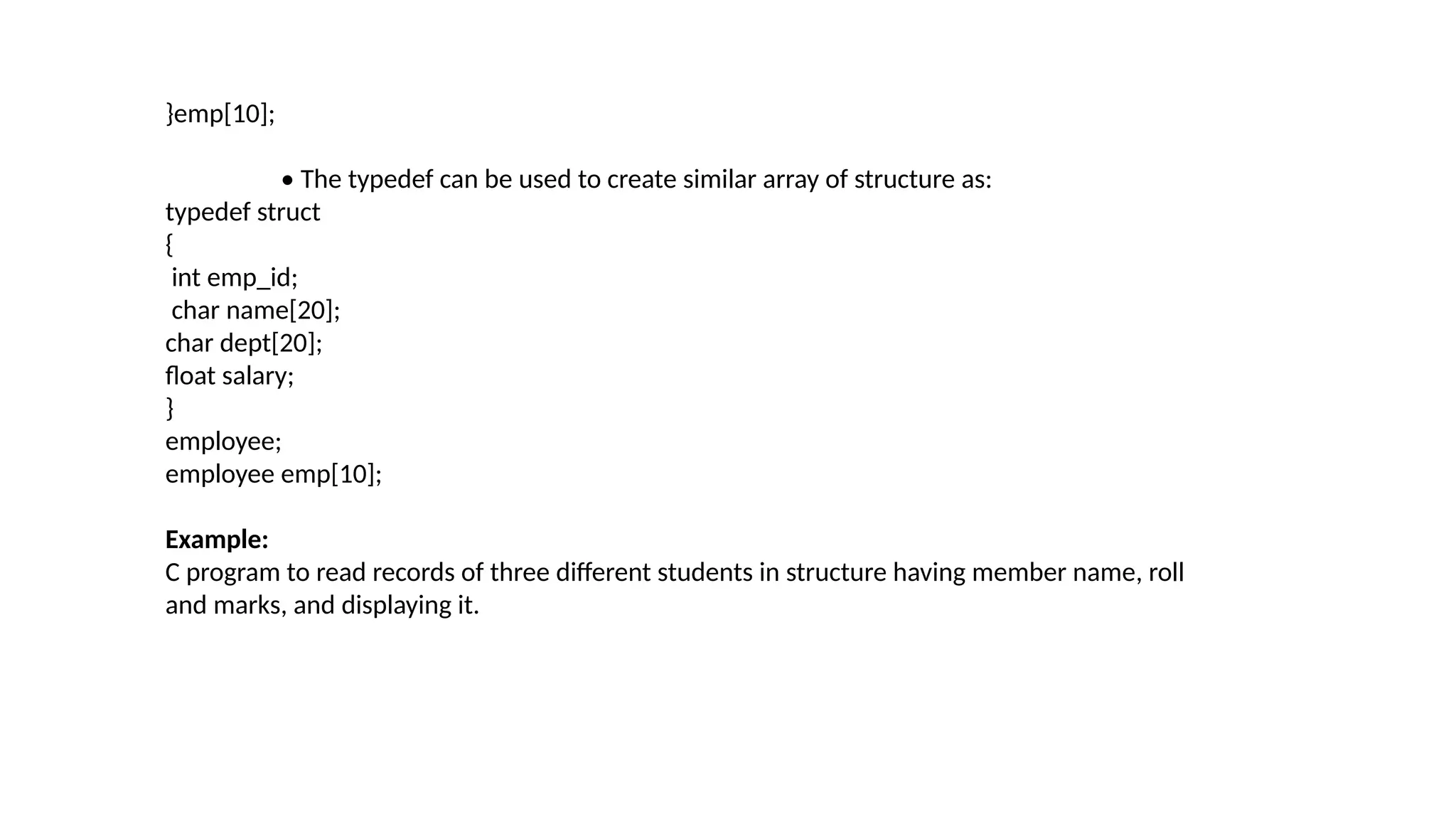 Array of Structures in C