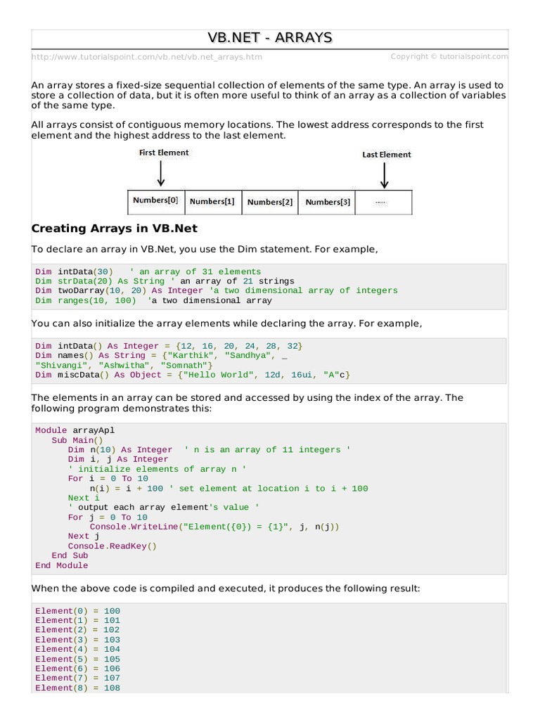 VB.Net Arrays: Understanding Creation and Usage of Arrays in | Course Hero