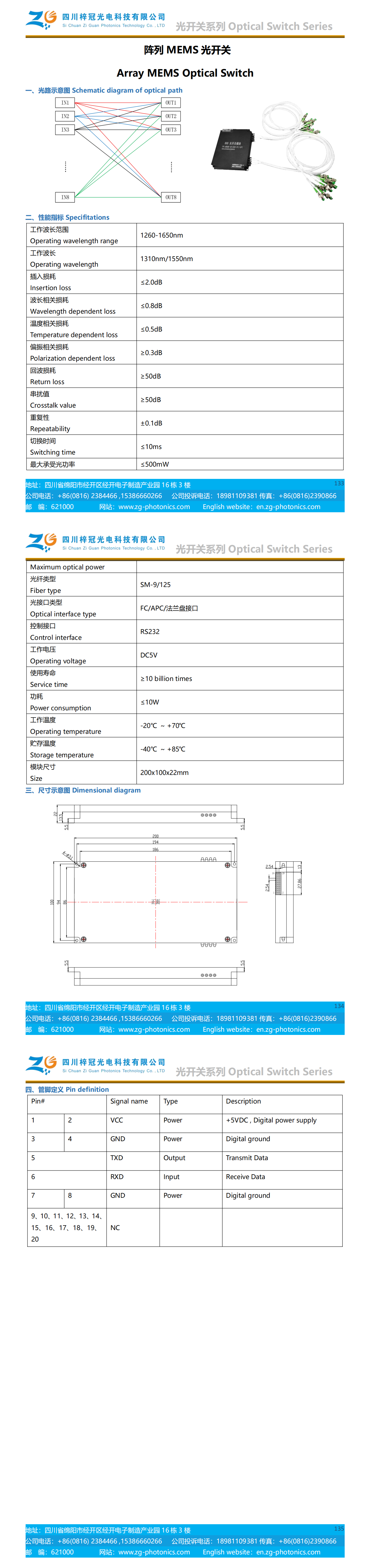 Array MEMS Optical Switch - Sichuan Ziguan Photonics Technology Co., Ltd