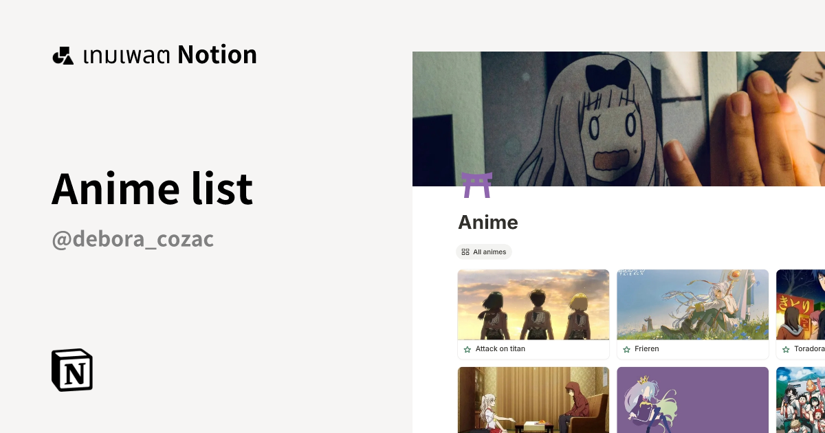 เทมเพลต Anime list | มาร์เก็ตเพลส Notion