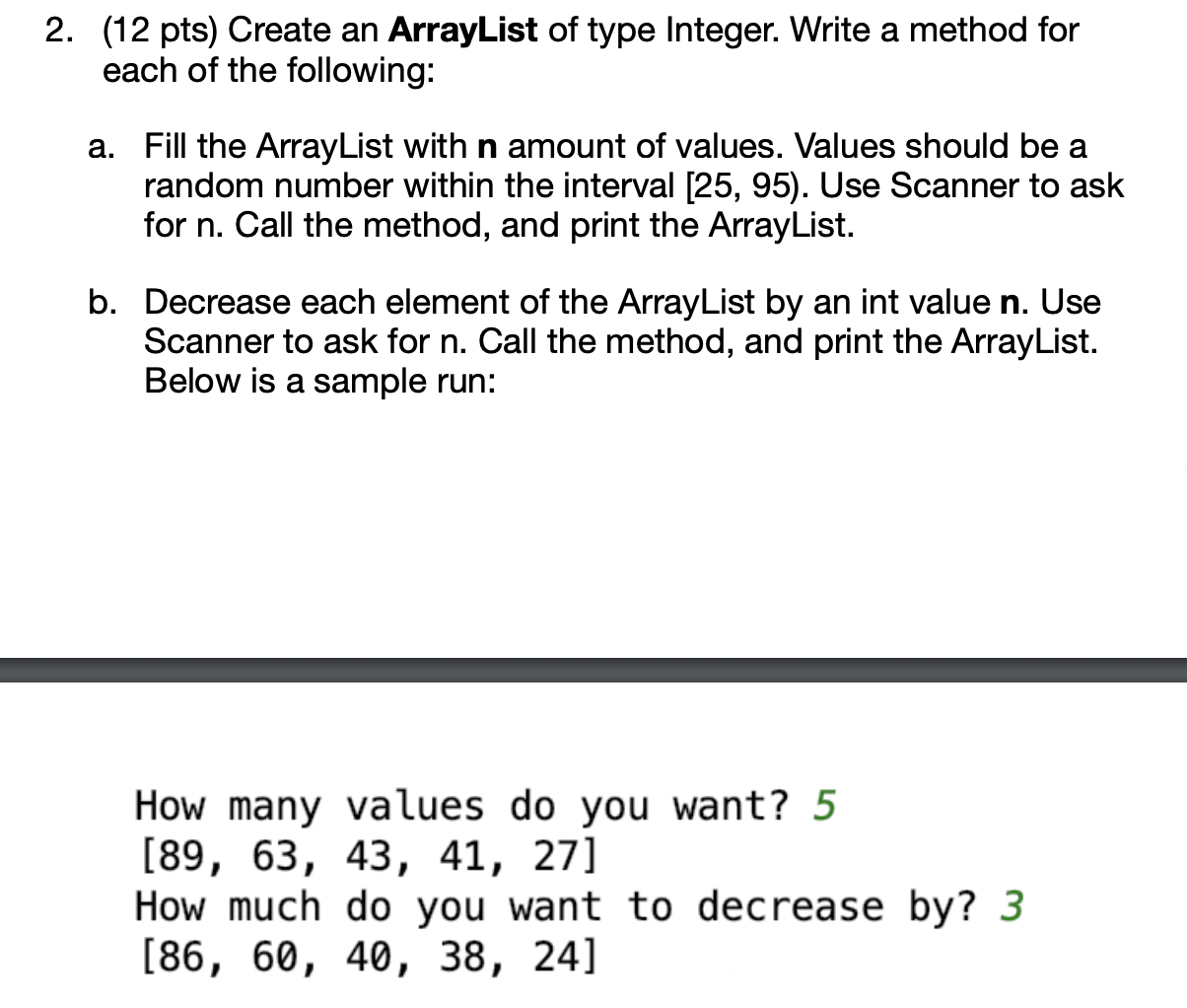Solved 2. (12 pts) Create an ArrayList of type Integer. | Chegg.com
