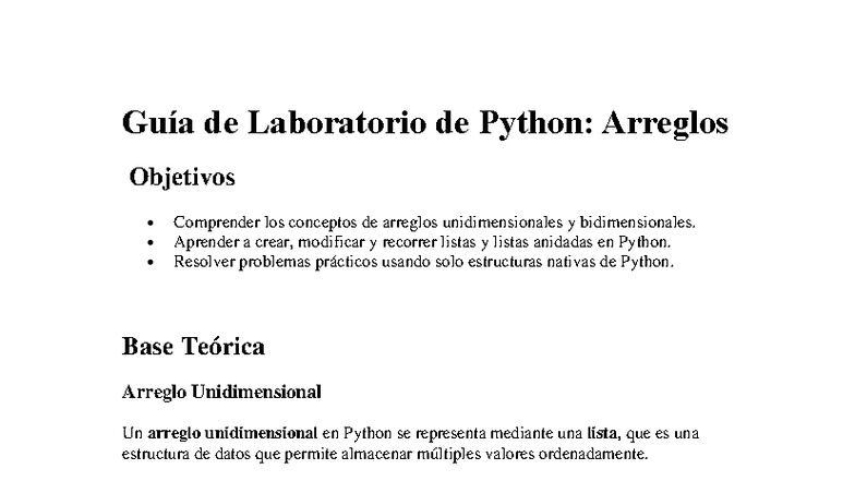 Guía de Laboratorio de Python: Arreglos y Listas en Profundidad - Studocu