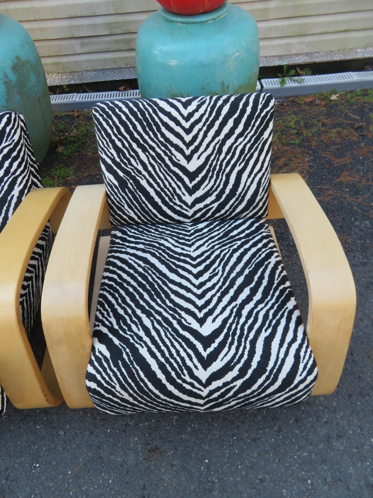 Fabulous Pair Zebra Print Alvar Aalto 400 Tank Chair by Artek Mid ...