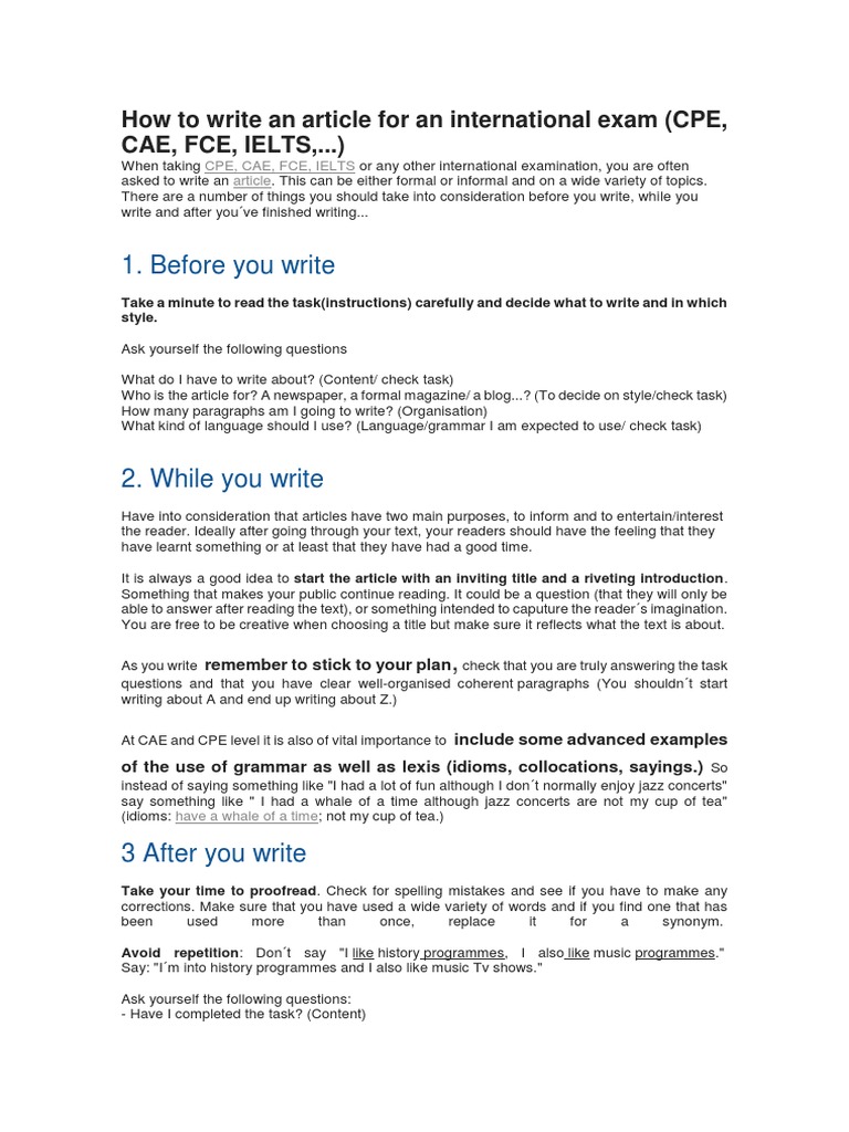 How to write an article – B1 Preliminary (PET) Exam - Test-English