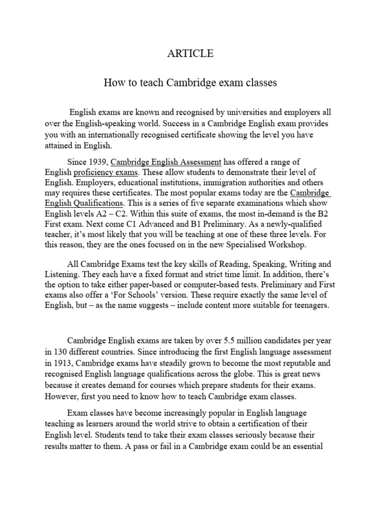 Article sample for B1 Preliminary (PET) Cambridge test in 2024 ...