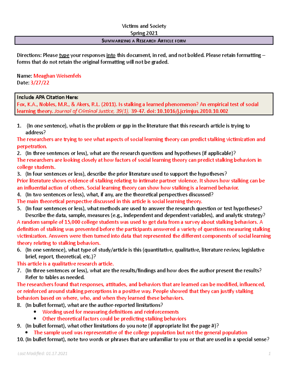 Article Form 4 SOCI 425 - Victims and Society Spring 2021 SUMMARIZING A ...