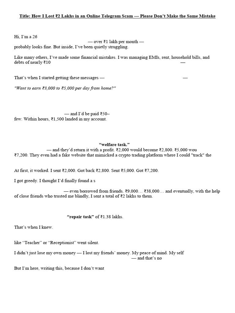 Article - Fraud Happened With Me - Online Scam - Telegram | PDF