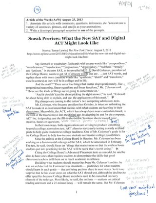 Student Samples: Article of the Week | PDF