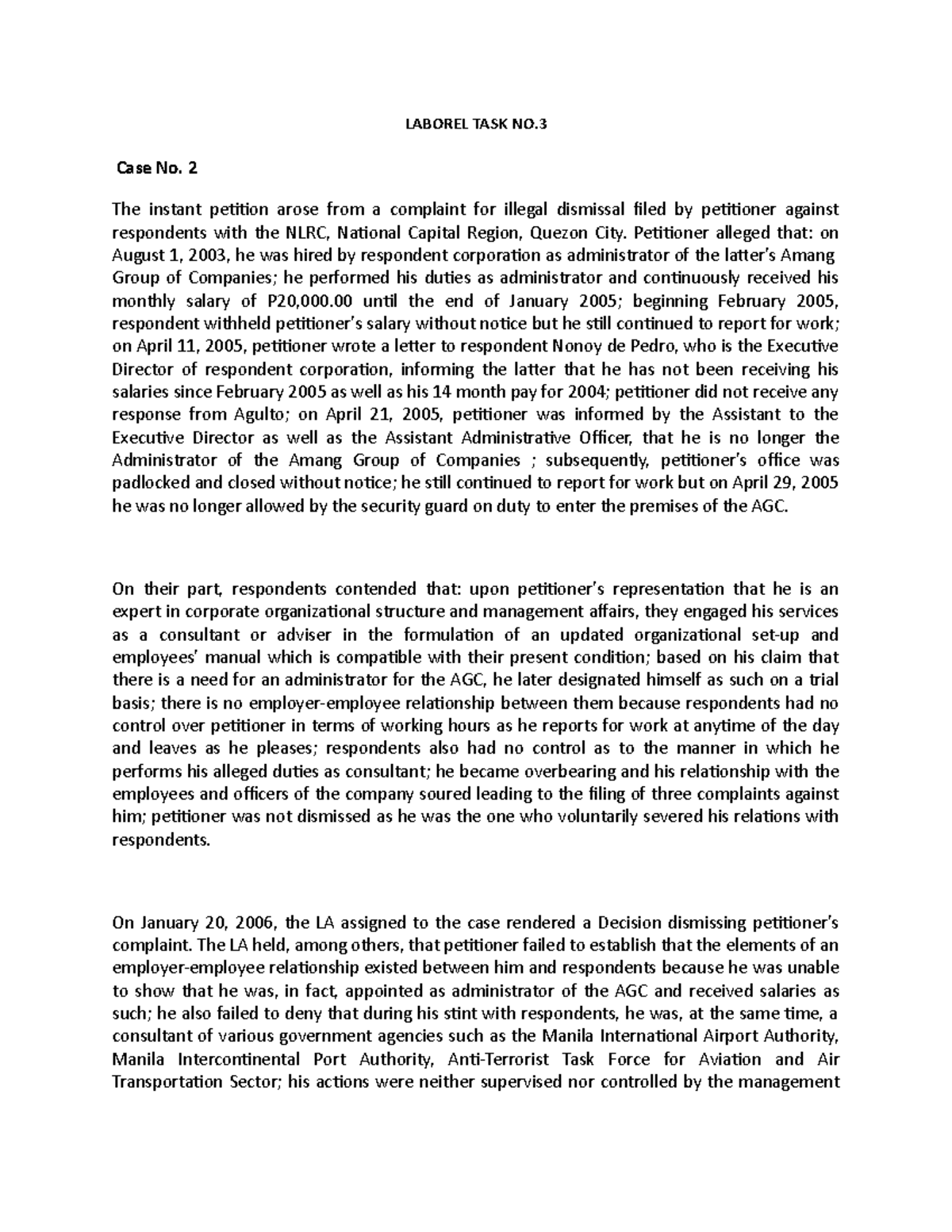 Laborel TASK NO 3 - Labor law relations task and quizzes - LABOREL TASK ...