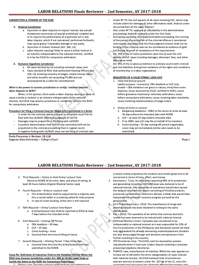 LABREL Finals Reviewer PART 1 | PDF | Strike Action | Injunction