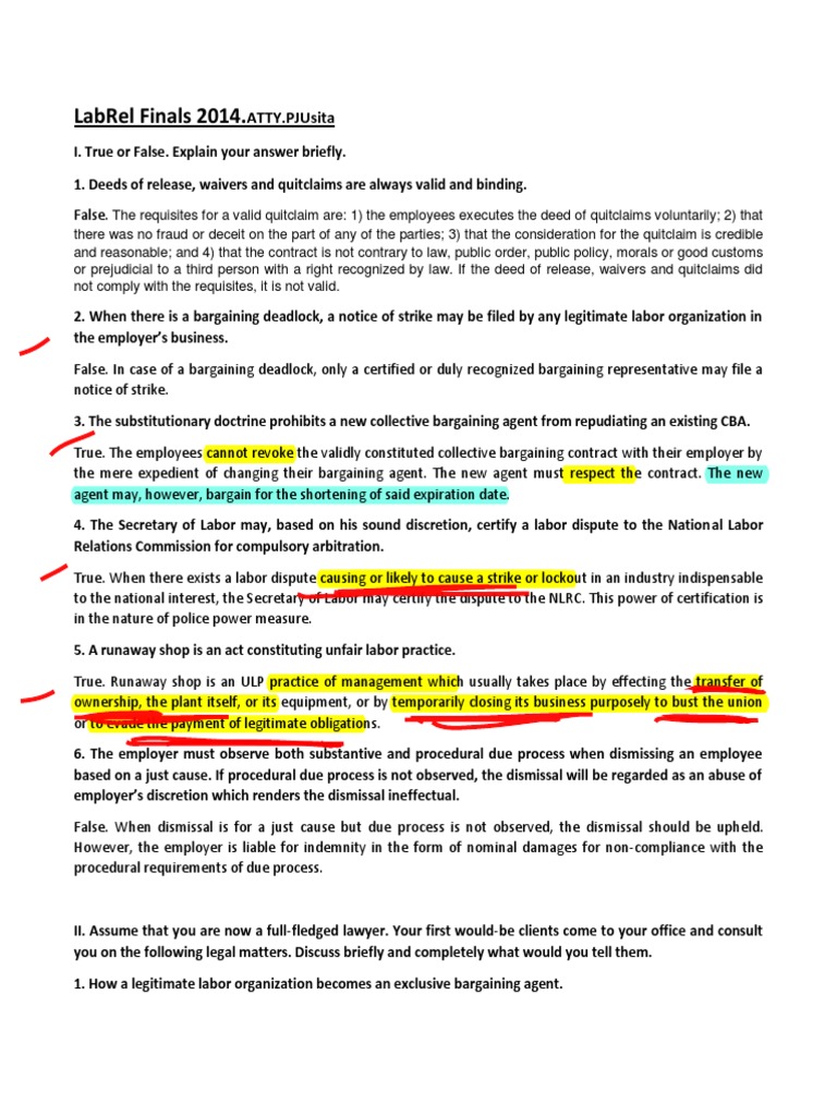 LABREL Usita FT Qs Compilation With Suggested Answers II | PDF | Strike ...