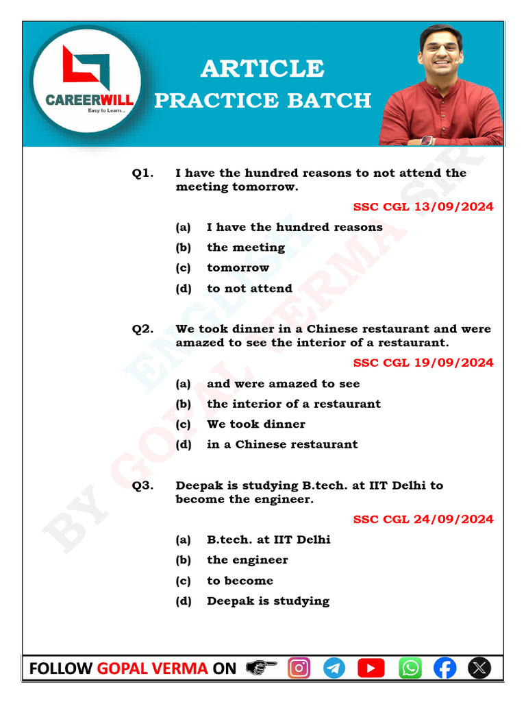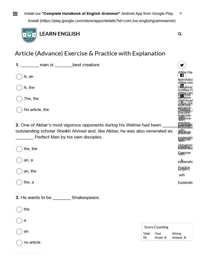 Article (Advance) Exercise & Practice with Explanation _ Learn English ...