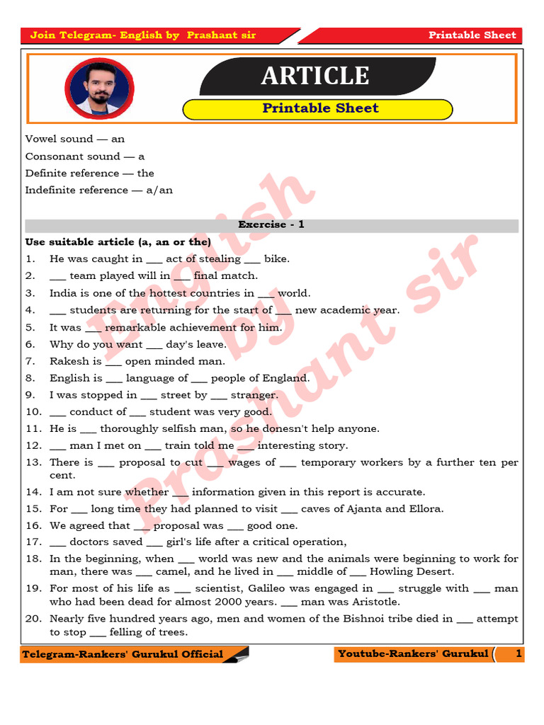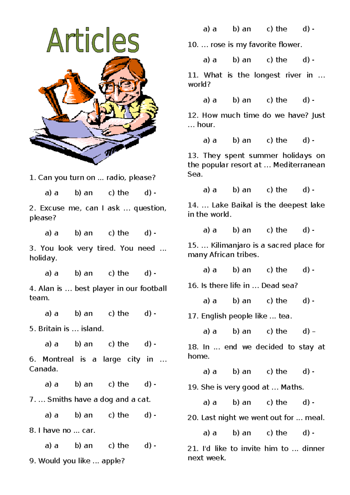 101 Articles PDF Worksheets with Answers [2145 Exercises] - Grammarism