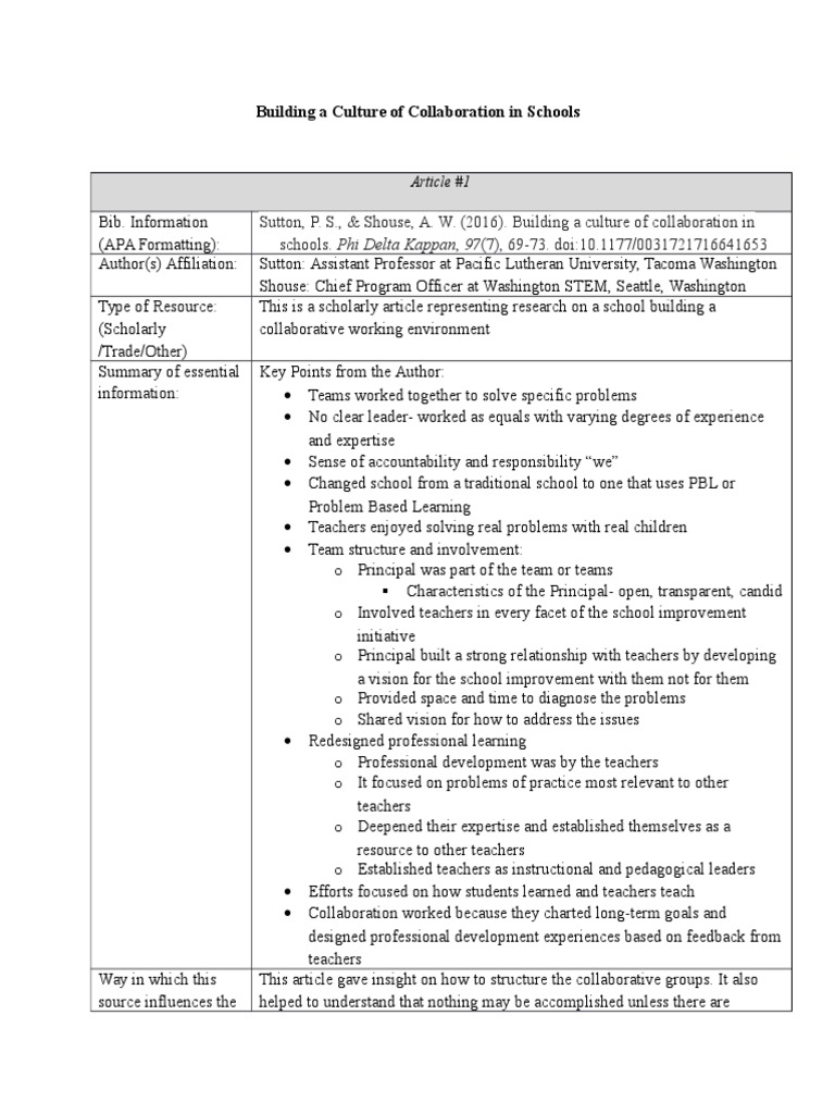 Building A Culture of Collaboration Article Article 1 | PDF | Teachers ...