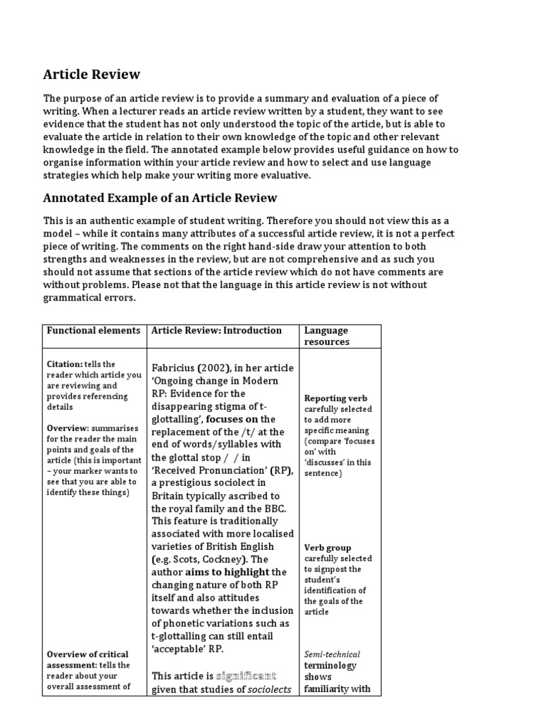 Article Review Writing Guide and Free Example as a PDF