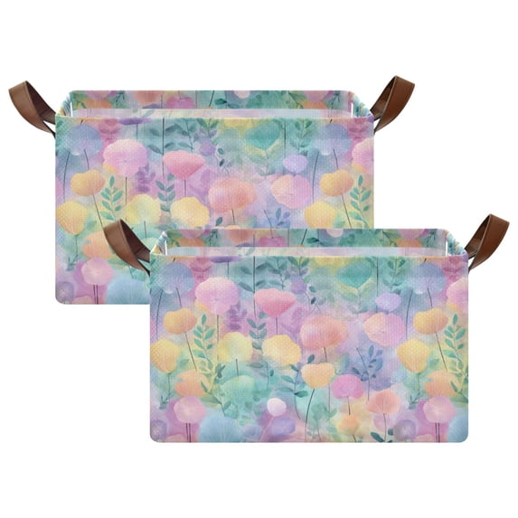2PCS Fabric Storage Baskets with Iron Frame Foldable Storage Bins with ...