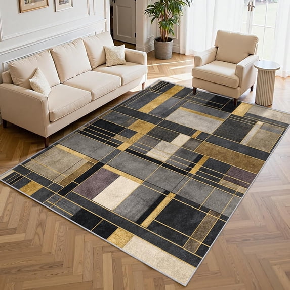 Black Gold Geometric Area Rug, Mondrian Abstract Pattern Carpet ...