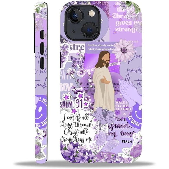 Case for iPhone 14 Plus,Purple Flower Jesus Bible Exquisitely Pattern ...
