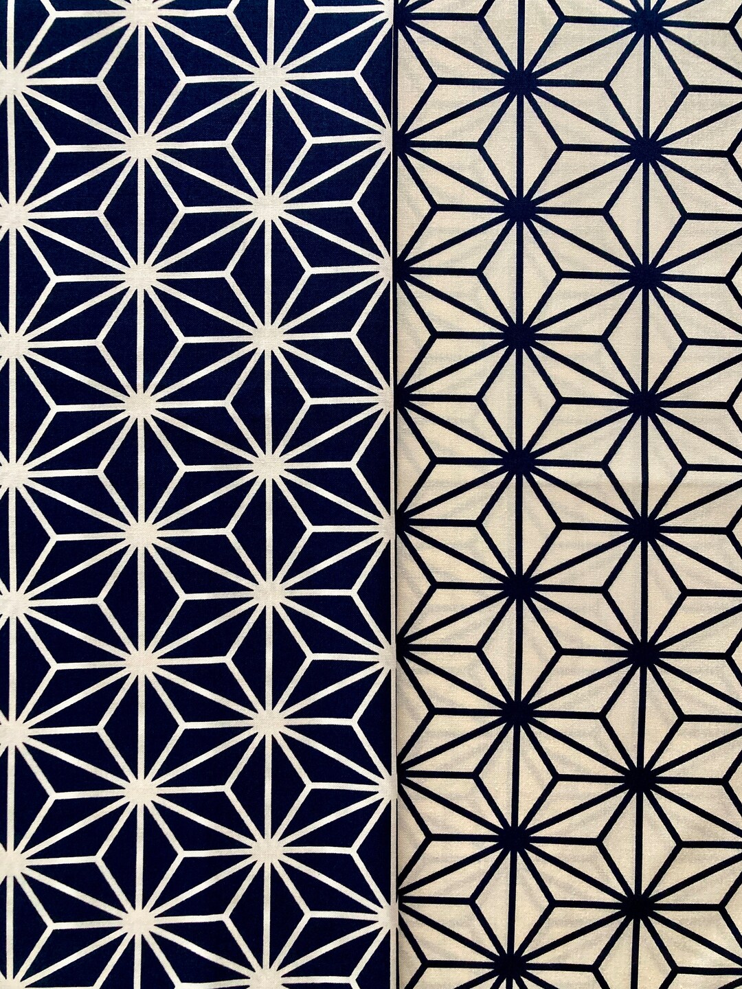 Asanoha (hemp Leaf) Pattern in Navy and Ivory, Japanese Cotton Fabric ...