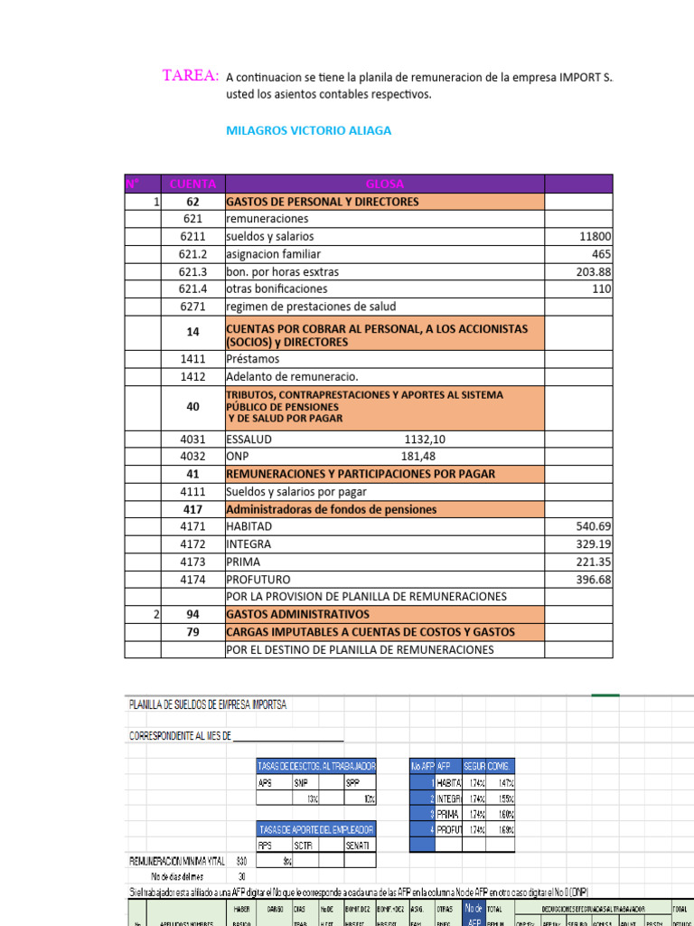 Asiento de Planilla Tarea 13 | PDF | Salario | Sueldos y salarios