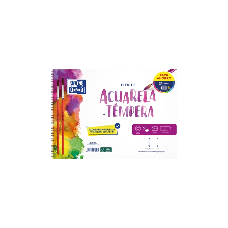 Bloc de papier aquarelle Oxford à spirale - Format A4 - Pinceaux inclus ...