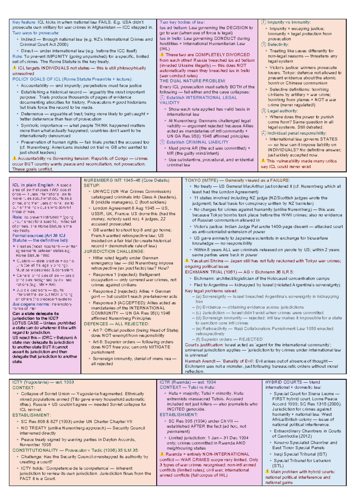 ICL Cheatsheet: Key Features and Prosecution Mechanisms - Studocu