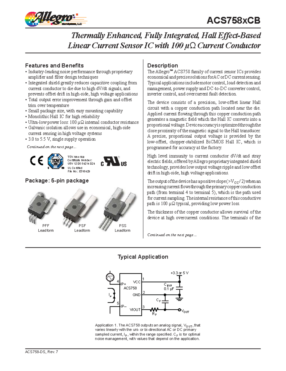 ACS758xCB Hall Linear Current Sensor IC: Features & Benefits Overview ...