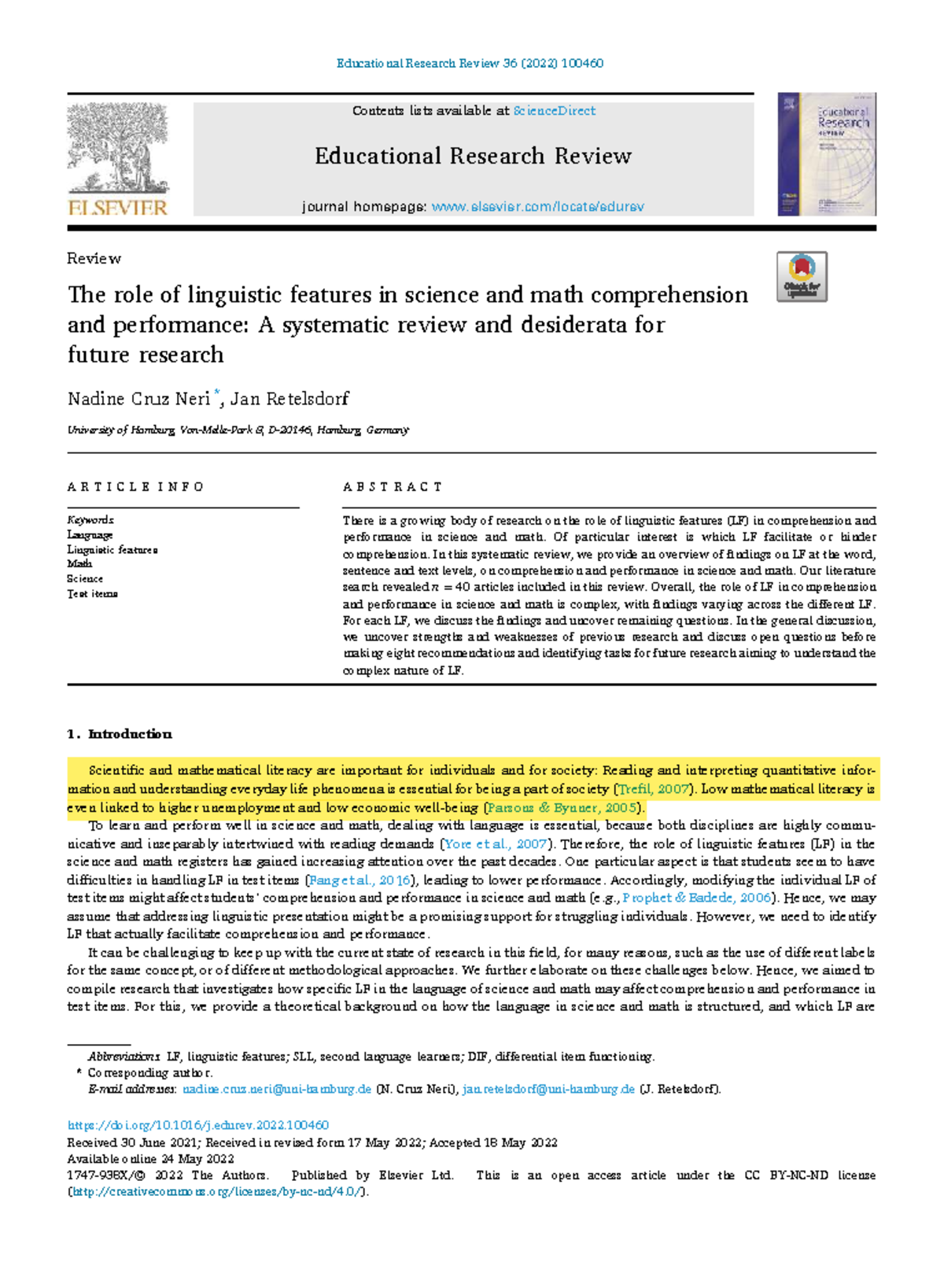 The Role of Linguistic Features in Science and Math Comprehension: A ...