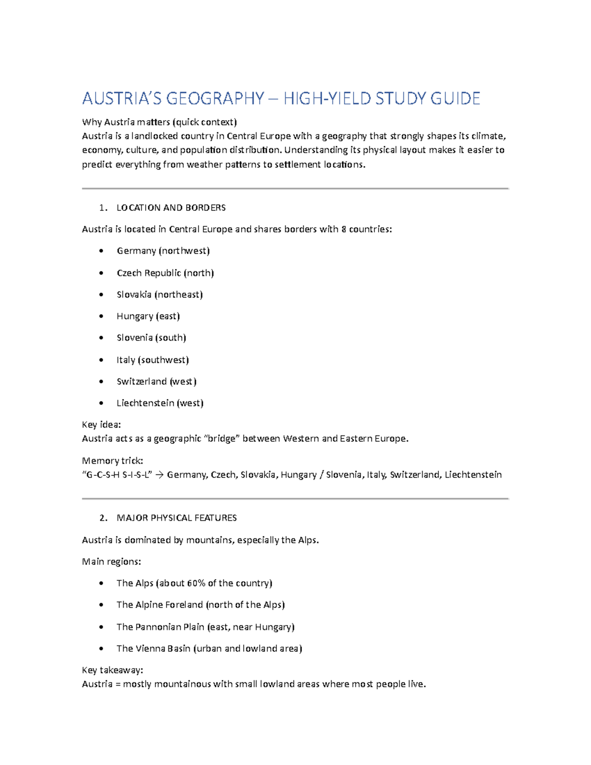 GEOG 101: Austria's Geography Study Guide - Key Concepts & Features ...