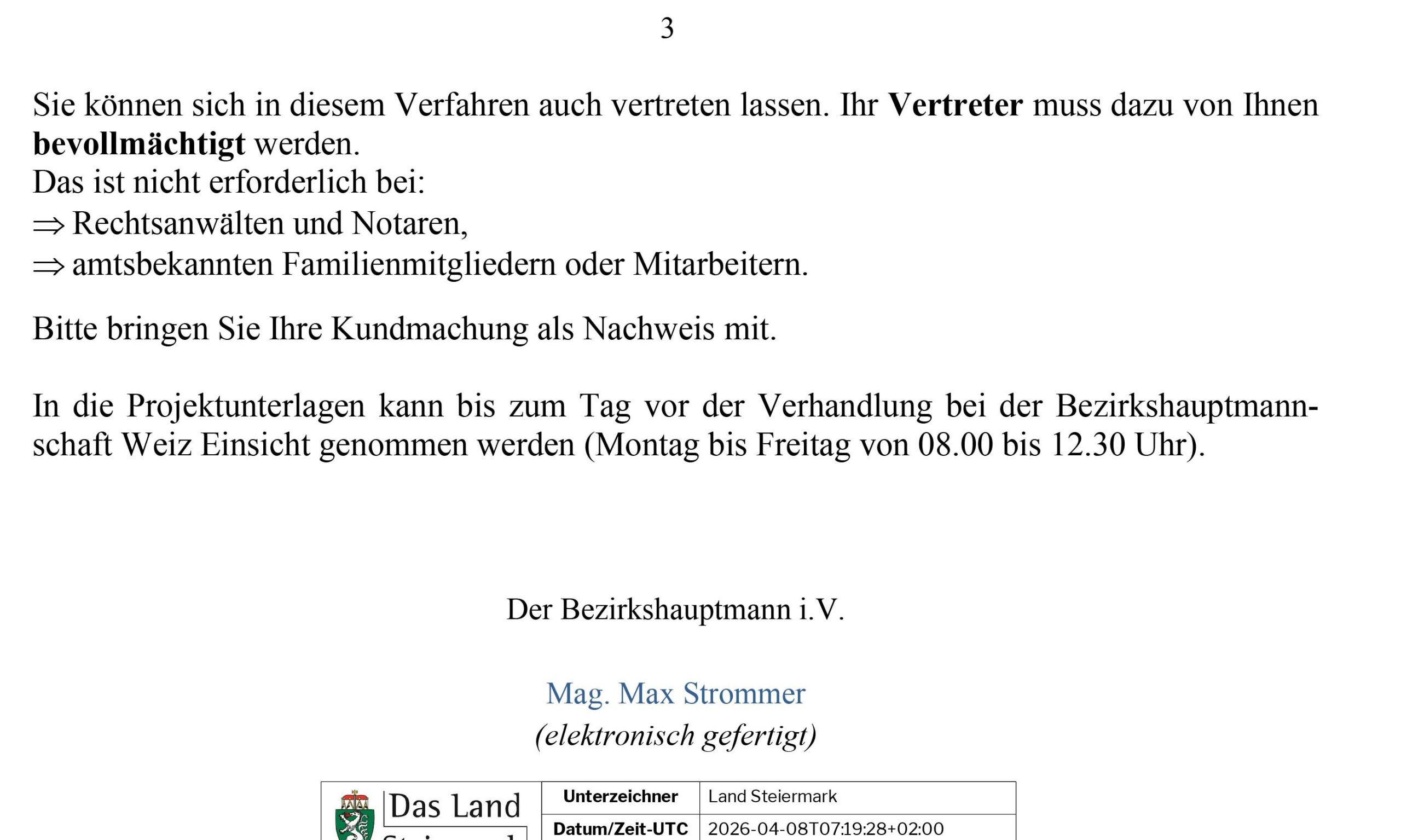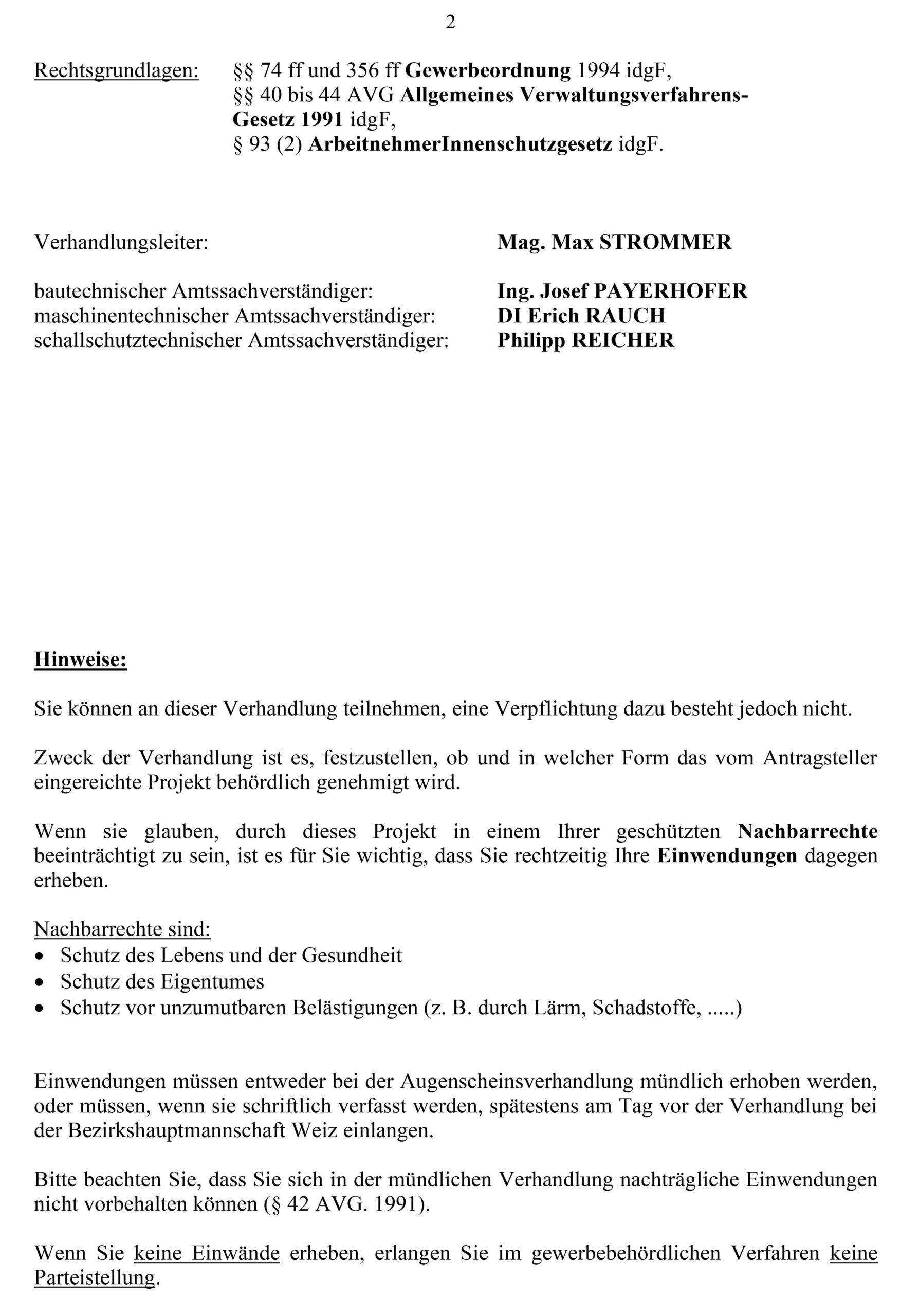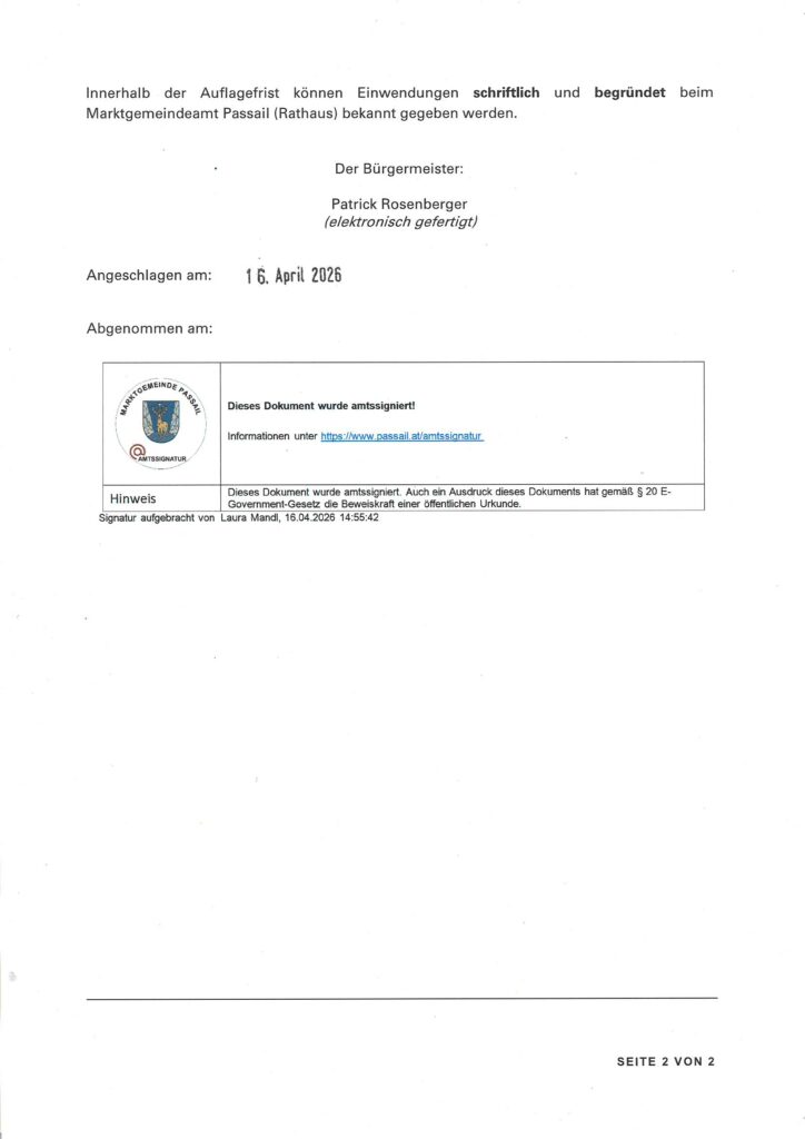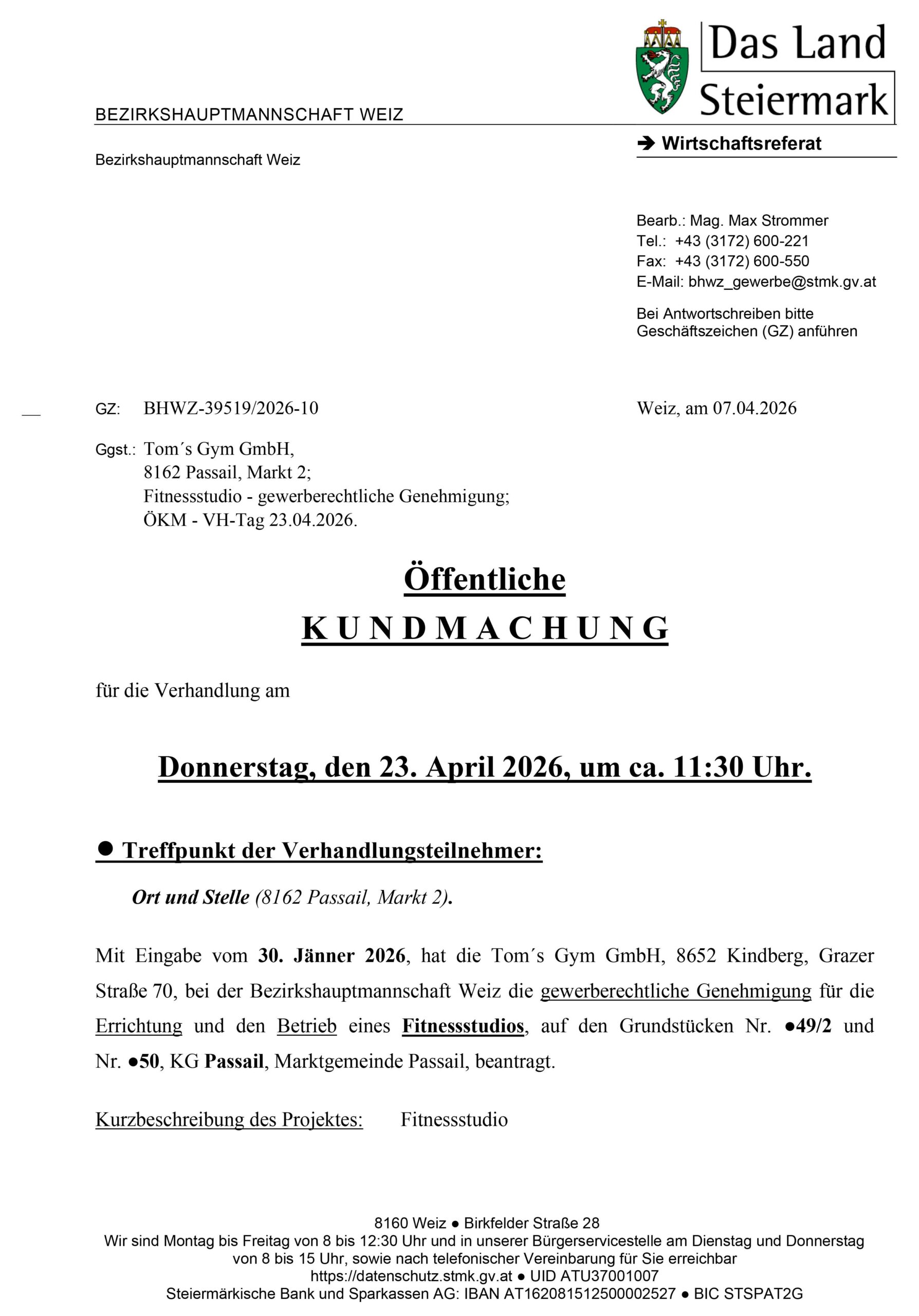 Kundmachung gewerberechtliche Verhandlung 23.4.2026 – Marktgemeinde Passail