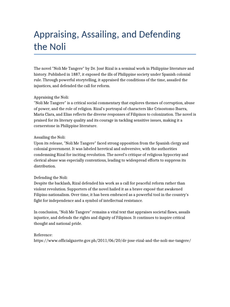 Appraising Assailing Defending Noli | PDF