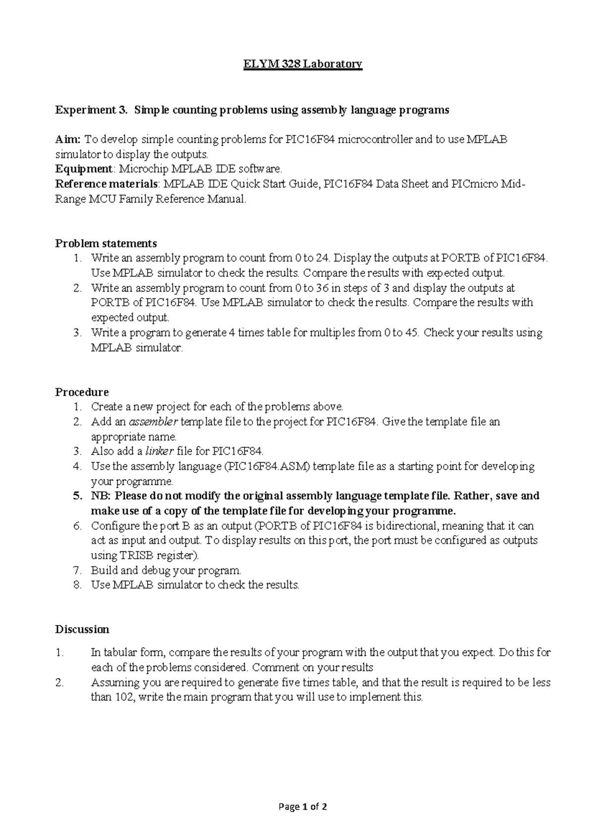 ELYM 328 Lab 03: Assembly Language Counting Problems - Studocu