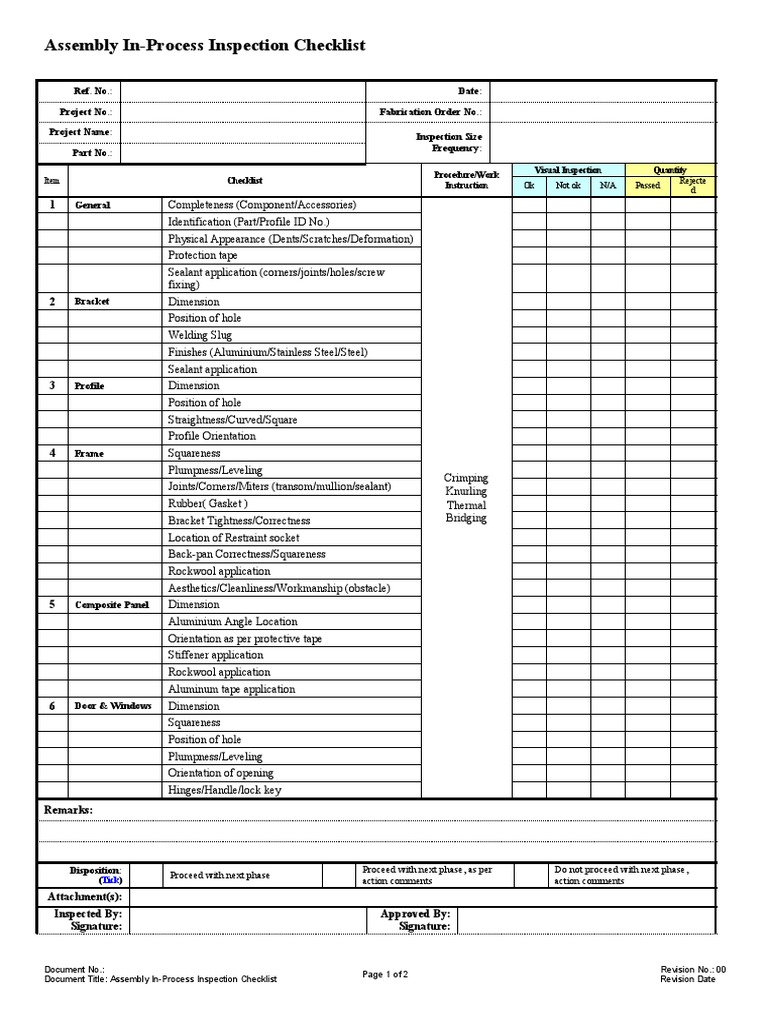 Assembly In-Process Inspection Checklist | PDF | Materials | Building ...