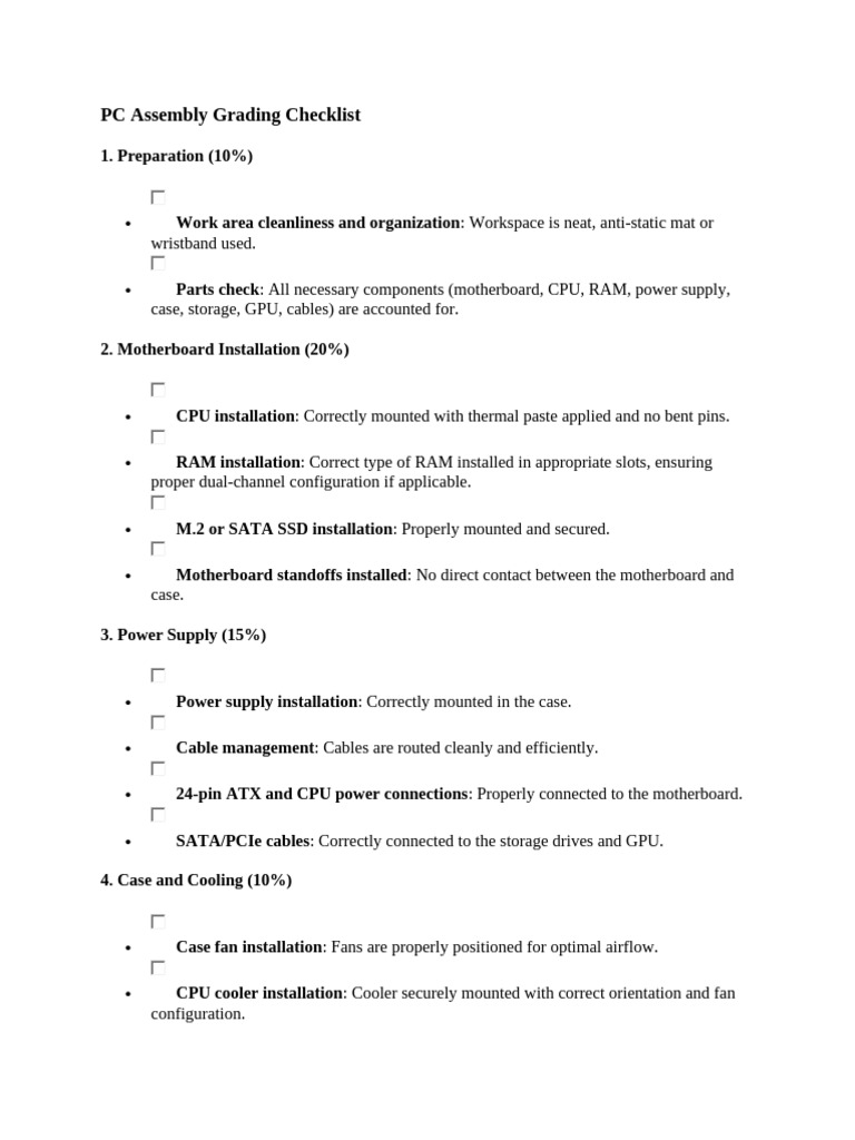 PC Assembly Grading Checklist | PDF