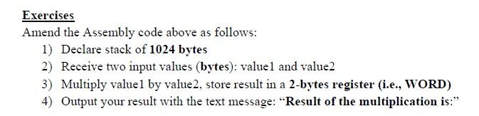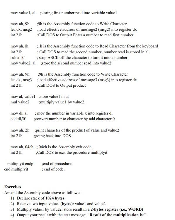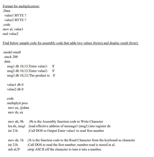 Solved Assembly Code to multiply two values (bytes) and | Chegg.com