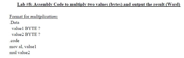 Solved type a Assembly Code to multiply two values (bytes) | Chegg.com