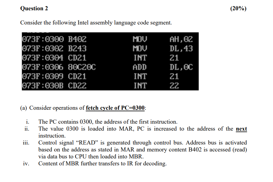 Consider the following Intel assembly language code | Chegg.com