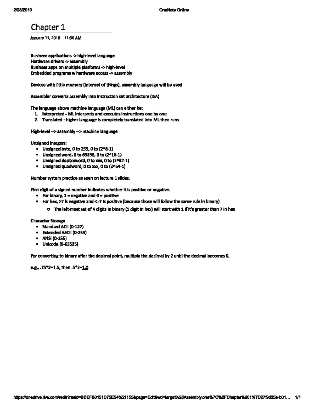 Introduction to Assembly & Operating Systems - 2/28/2019 OneNote Online ...