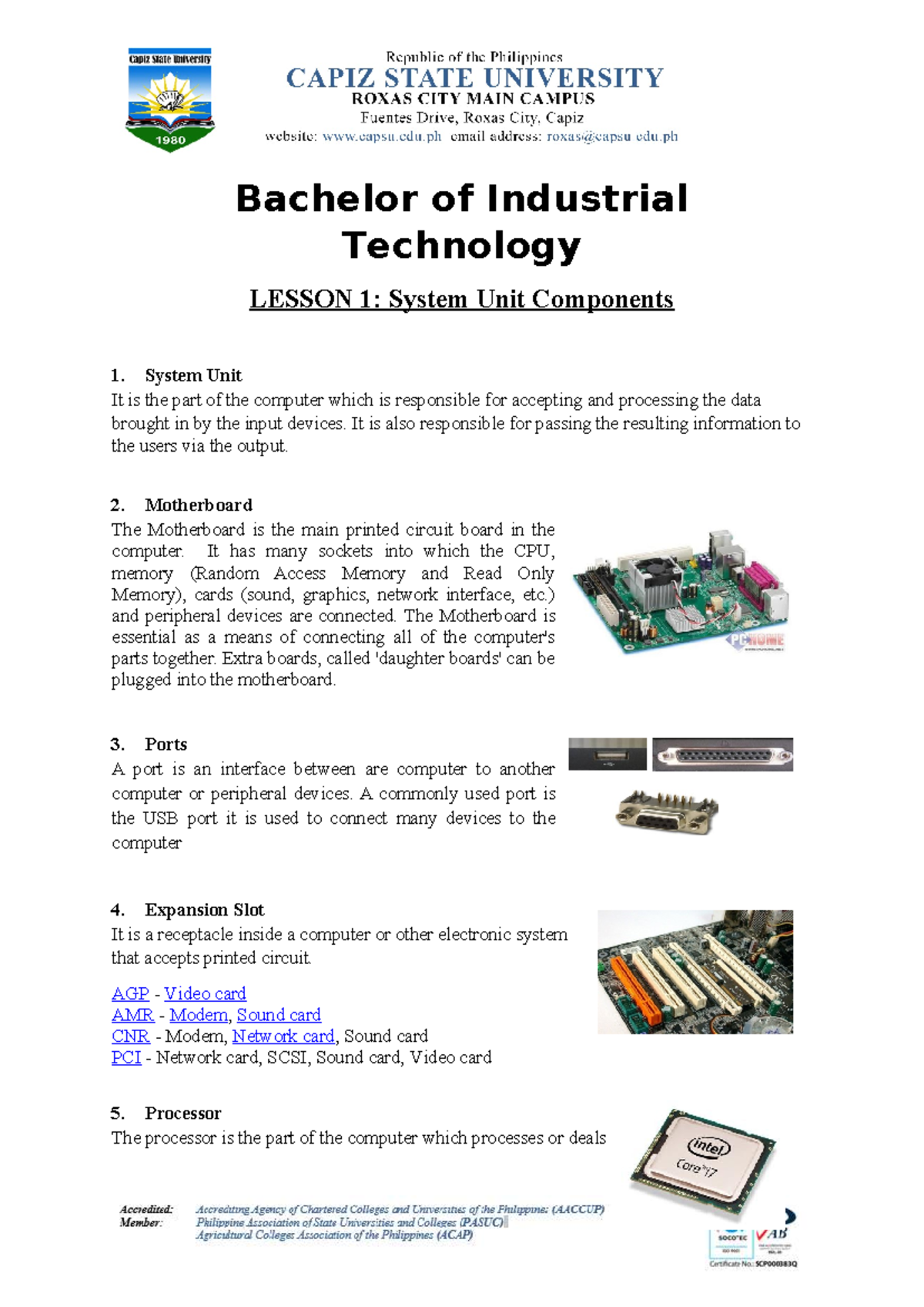 ICT-101: Lesson 1-3 on System Unit Components and PC Assembly - Studocu