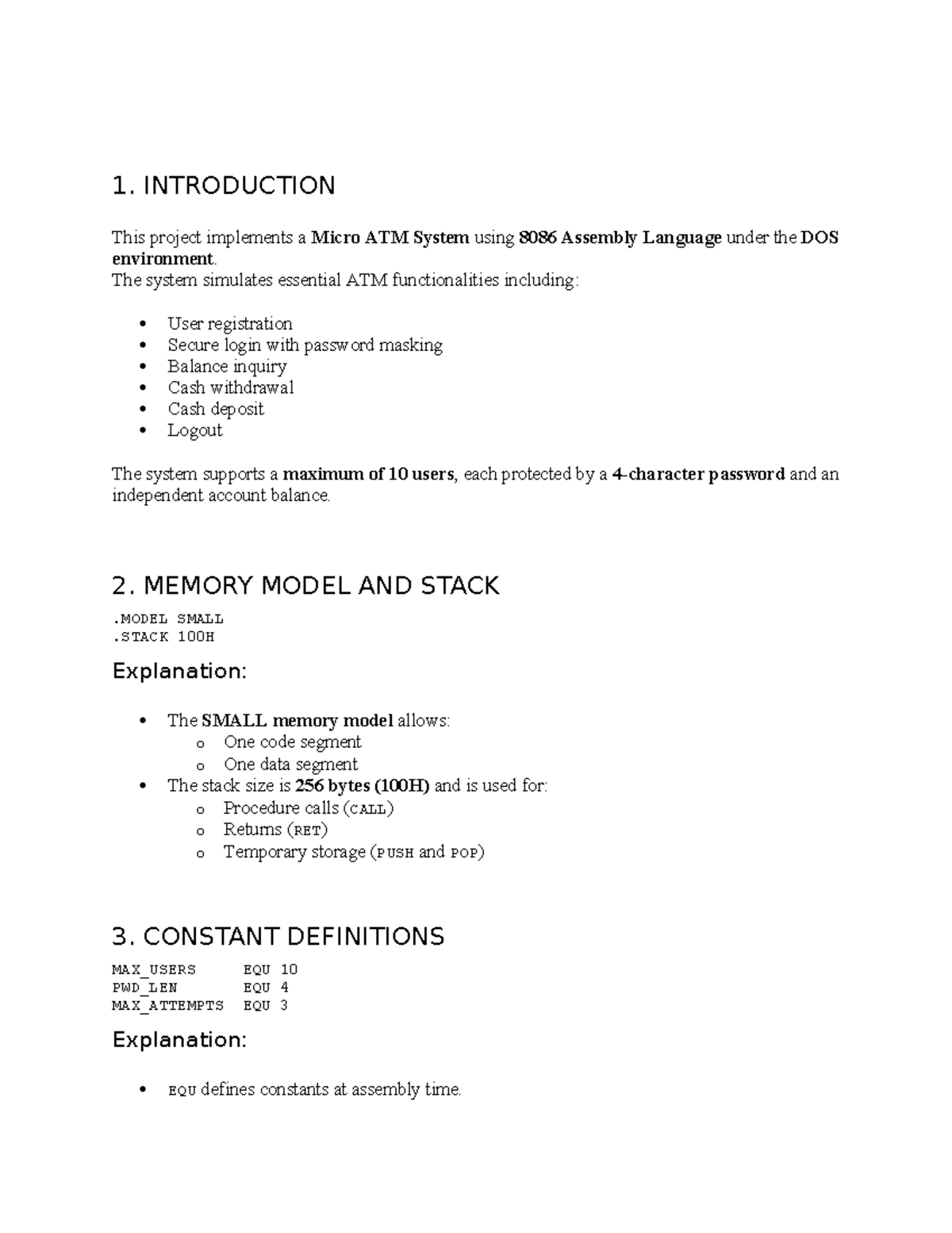 Micro ATM System Implementation - 8086 Assembly Language - Studocu