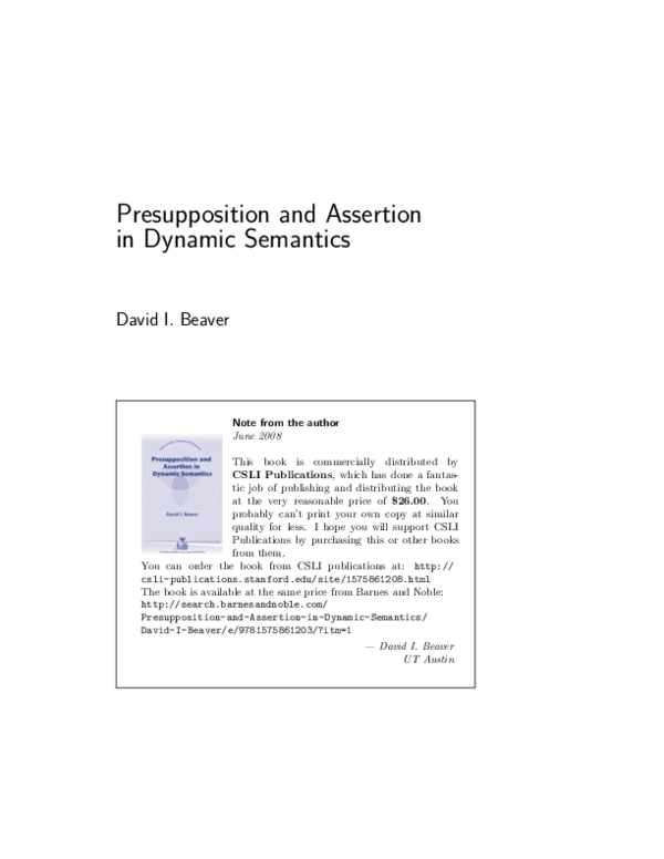 (PDF) Presupposition and assertion in dynamic semantics