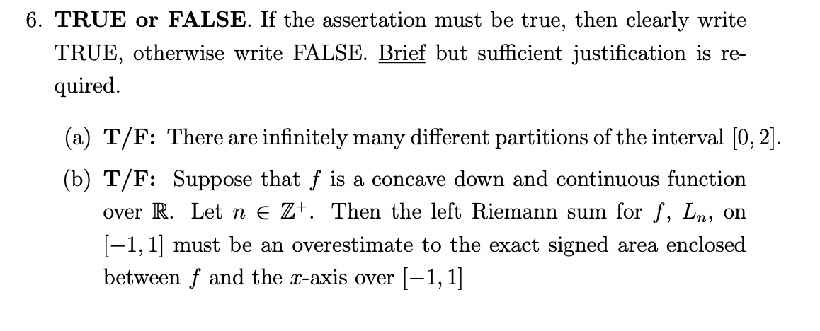 Solved 6. TRUE or FALSE. If the assertation must be true, | Chegg.com